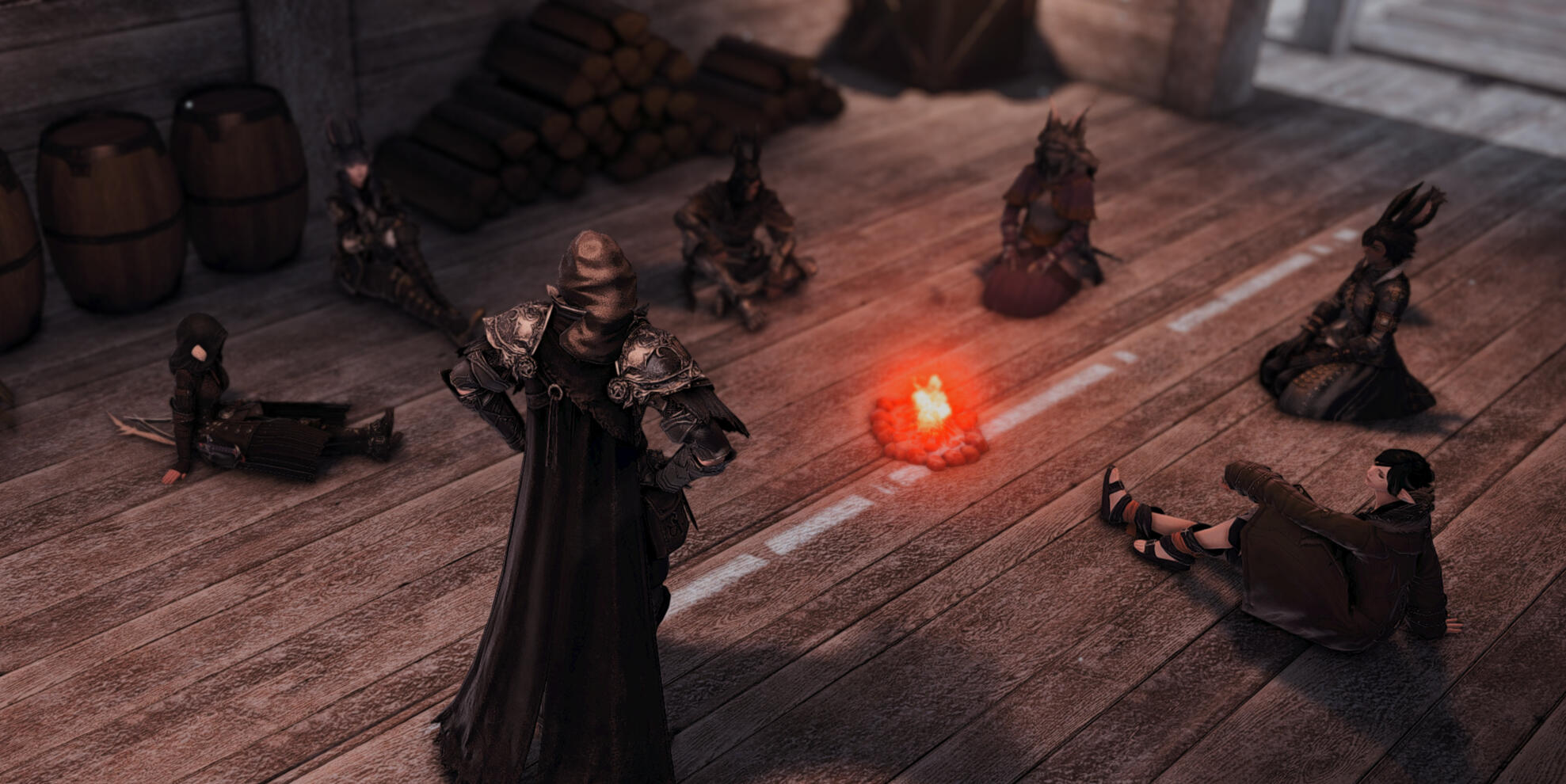 Off the beaten path between Upper and Outer La Noscea, a newly carved trail leads east through the crags and out to a cliffside trail, buffeted by the tumultuous waves of Merlthor Strait. Nestled between the sea and stone is Moergyft Hold.Worn stone walls, dead gardens, crumbled pillars, and ruined towers. The scent of salt, herbs, and ghosts.It is rundown, rudimentary in function, and undergoing a total repair. But it's something, and that something the Witchblades have not dared to imagine for a long time: somewhere to roost, train, and - the gods forbid - socialise.